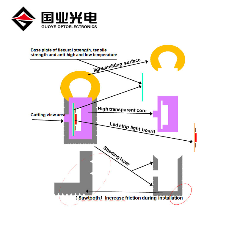 Her er Cut point på bagsiden af neon strip det er nemt at se og det kan skæres fra punktet. Vi kan tilbyde endekappe og kabel, til at lodde led strip til forskellig længde, og til strøm til arbejde.